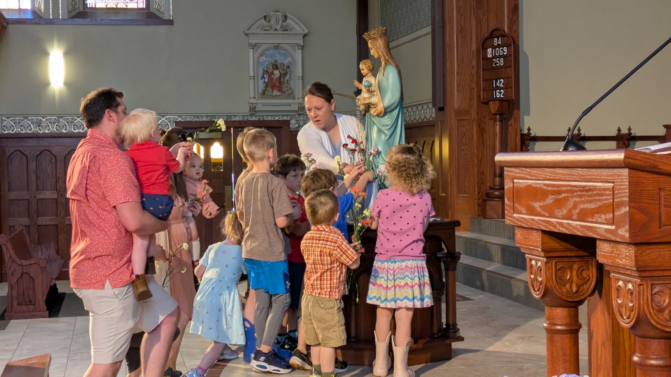 Together with several other women on the team, they spearheaded events such as “A Littlest Saint’s Day Party,” a Mardi Gras potluck, parent confessions (an opportunity to go to reconciliation before Easter with childcare and eucharistic adoration) and a Mother’s Day celebration, complete with a May crowning of Mary.
