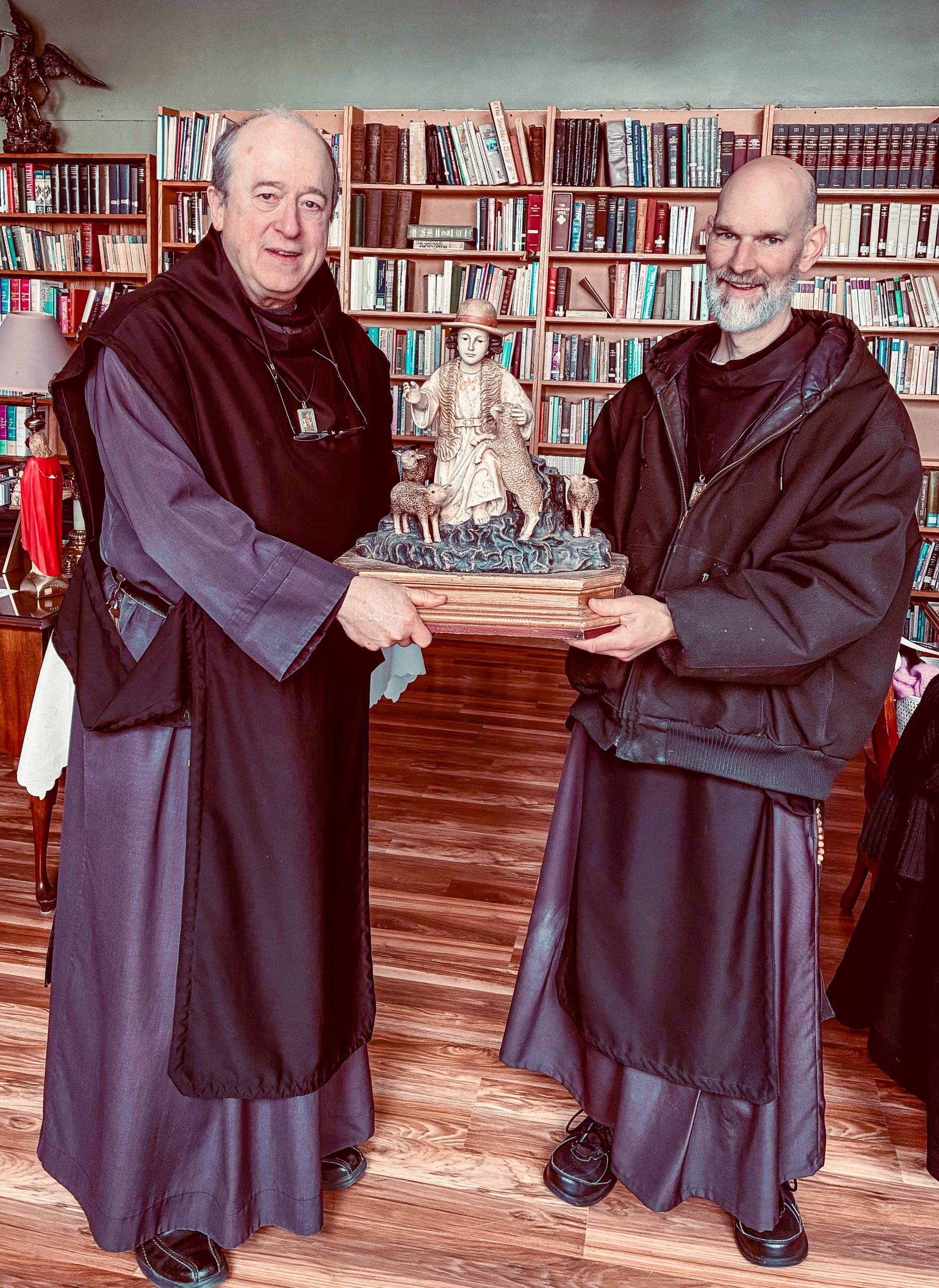 Leading members of the Institute of Saint Joseph at Core Jesu Oratory on January 17, 2026. From left to right: Father Michael Klos, moderator general, Father William Felix, cofounder and Father John Mary Gilbert, cofounder and consecrated hermit.