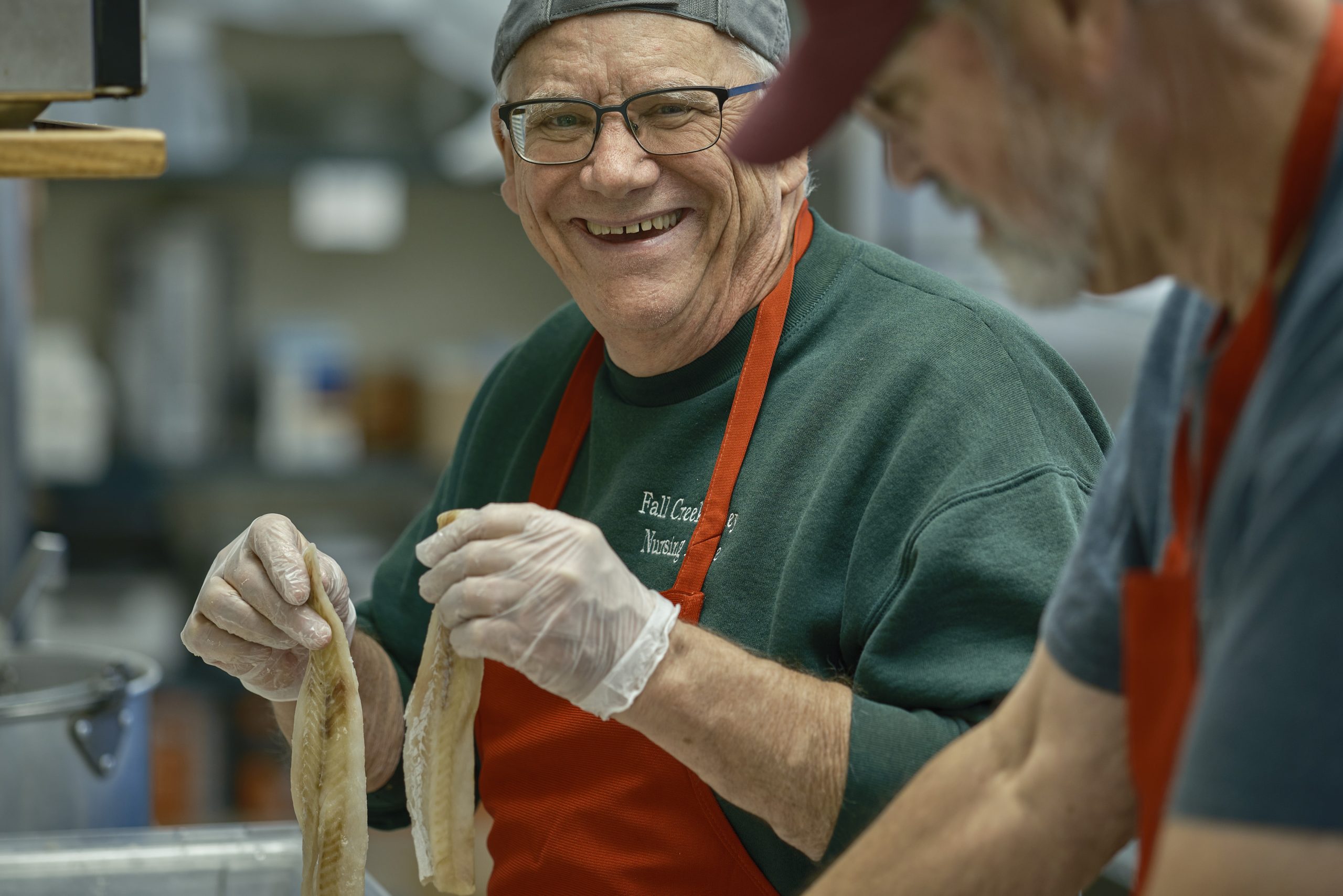 Promoting fellowship is a key aspect of these evenings, and it’s evident in the details. For example, round tables that seat up to nine are employed to encourage conversation, and children five and under eat free. To top it off, it’s all-you-can-eat. So, if you’re able to finish your three pieces of fish, potato and bean options, coleslaw and beets, mac n’ cheese and dessert with room to spare, you’re free to return to the line for seconds.
