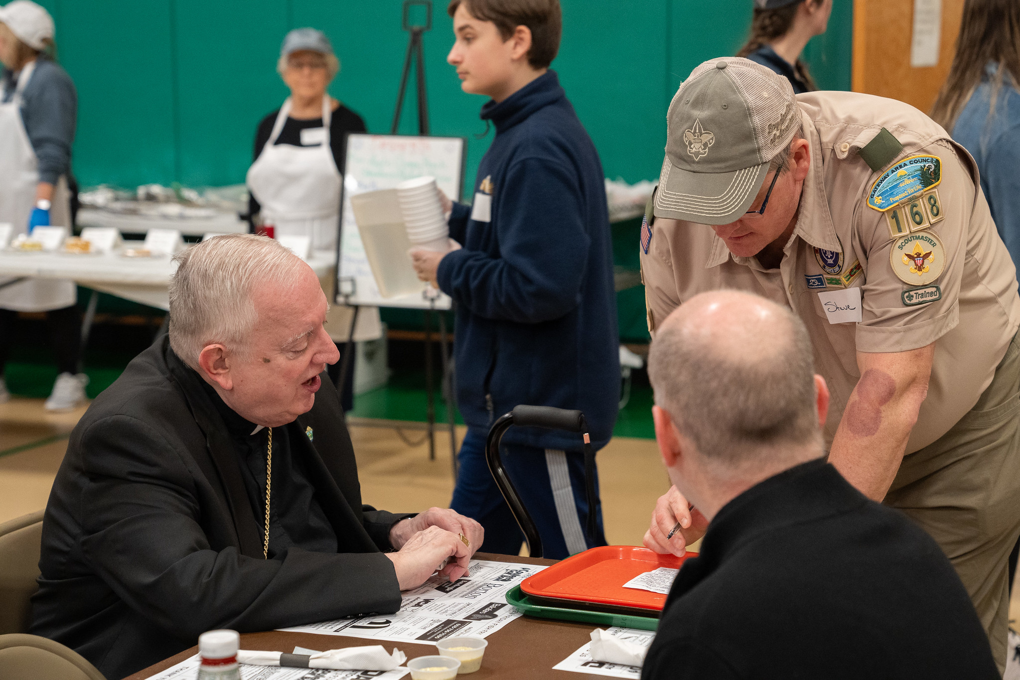 Jay Bouley, a longtime parishioner (37 years to be exact), has been working these nights for the past 11 years. His position on the serving line is critical, as he greets each diner with a smile, welcomes first-timers and reconnects with regulars. When asked how many people come through the line on an average Friday, Jay confidently responded that it was anywhere between 550 and 850 diners.